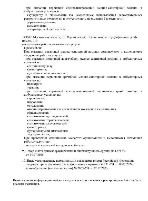 Лицензии медицинского центра «Триумф Мед»